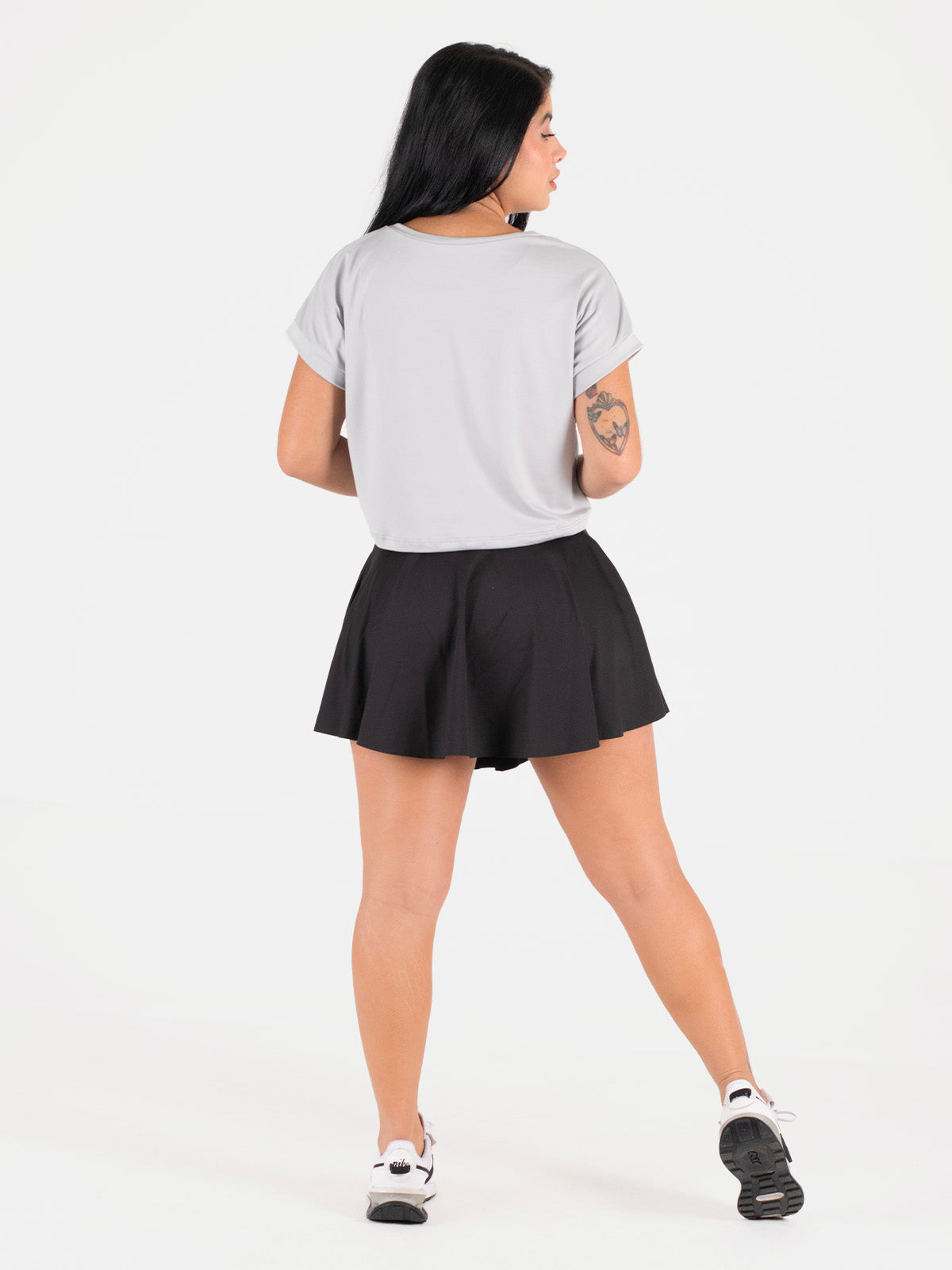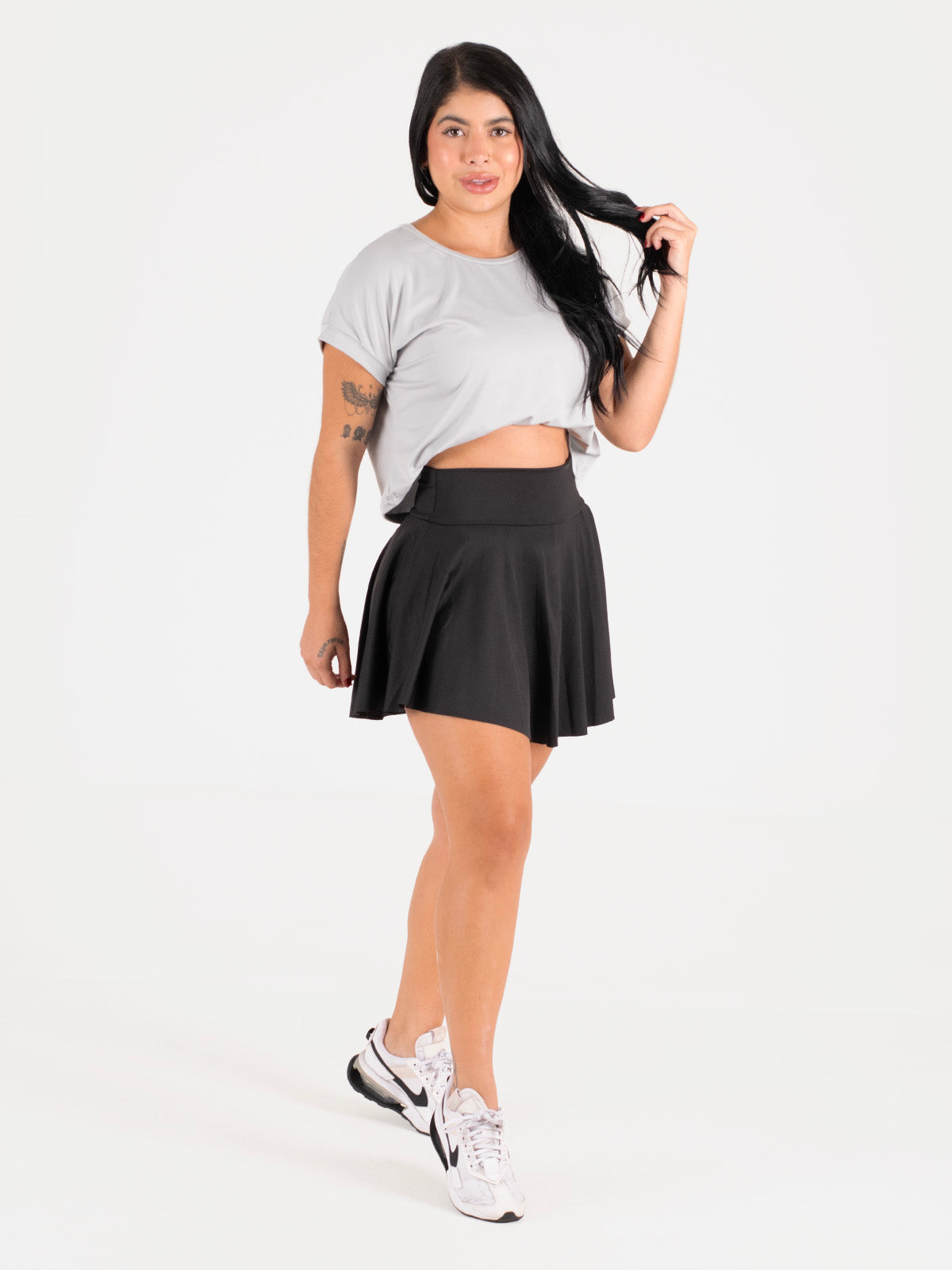 Camiseta: corta con mangas cortas y cuello redondo. Faldashort: Diseño con falda simétrica y fajón medio que ofrece un ajuste favorecedor y moderno. Tela: 100% Poliéster, ligera, fresca y de excelente caída. Talla única: Gracias a su tejido flexible, se adapta fácilmente a diferentes tipos de cuerpo, cediendo de la talla 6 a la 10.