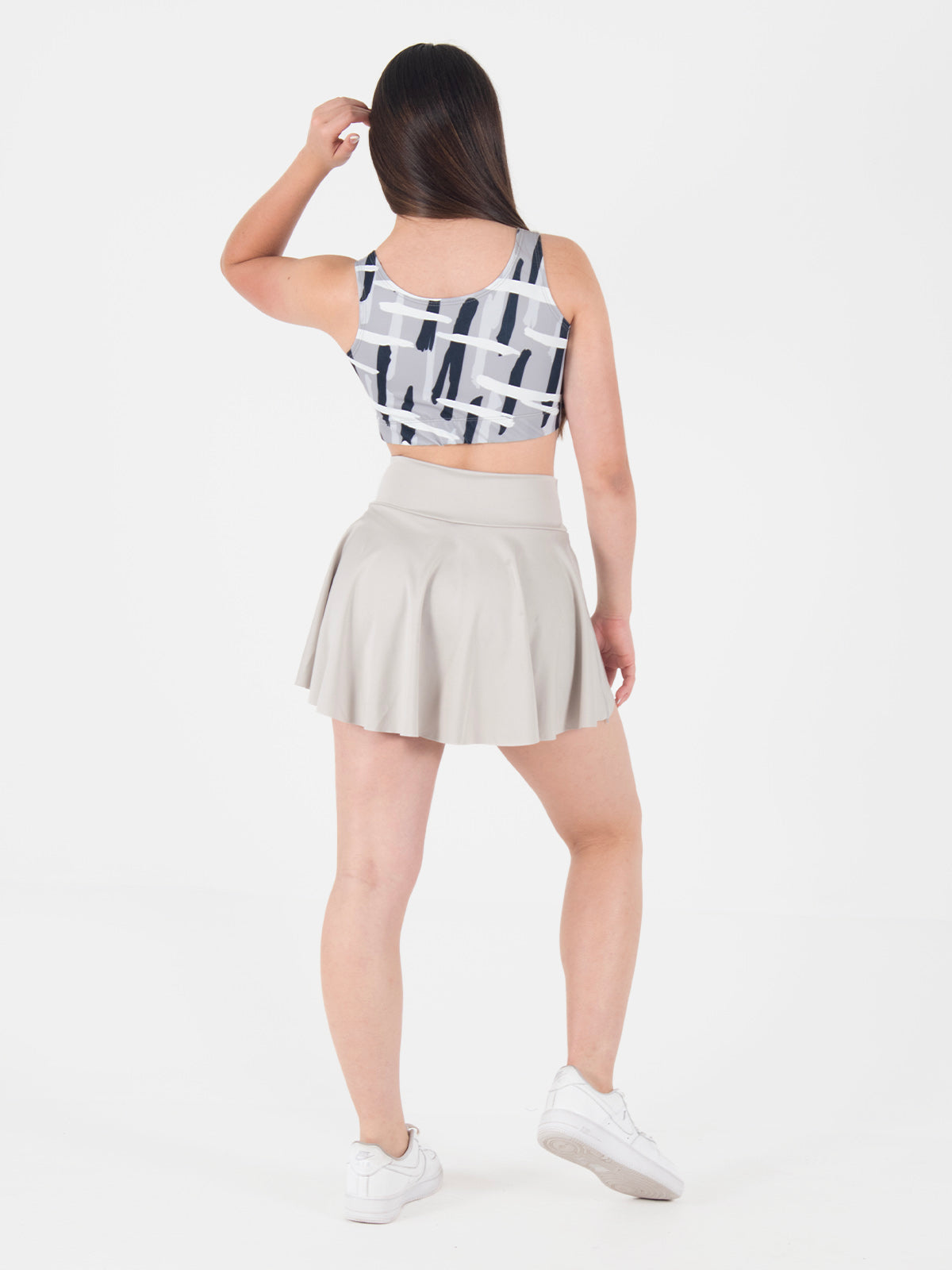 Faldashort: Diseño con falda simétrica y fajón medio que ofrece un ajuste favorecedor y moderno.