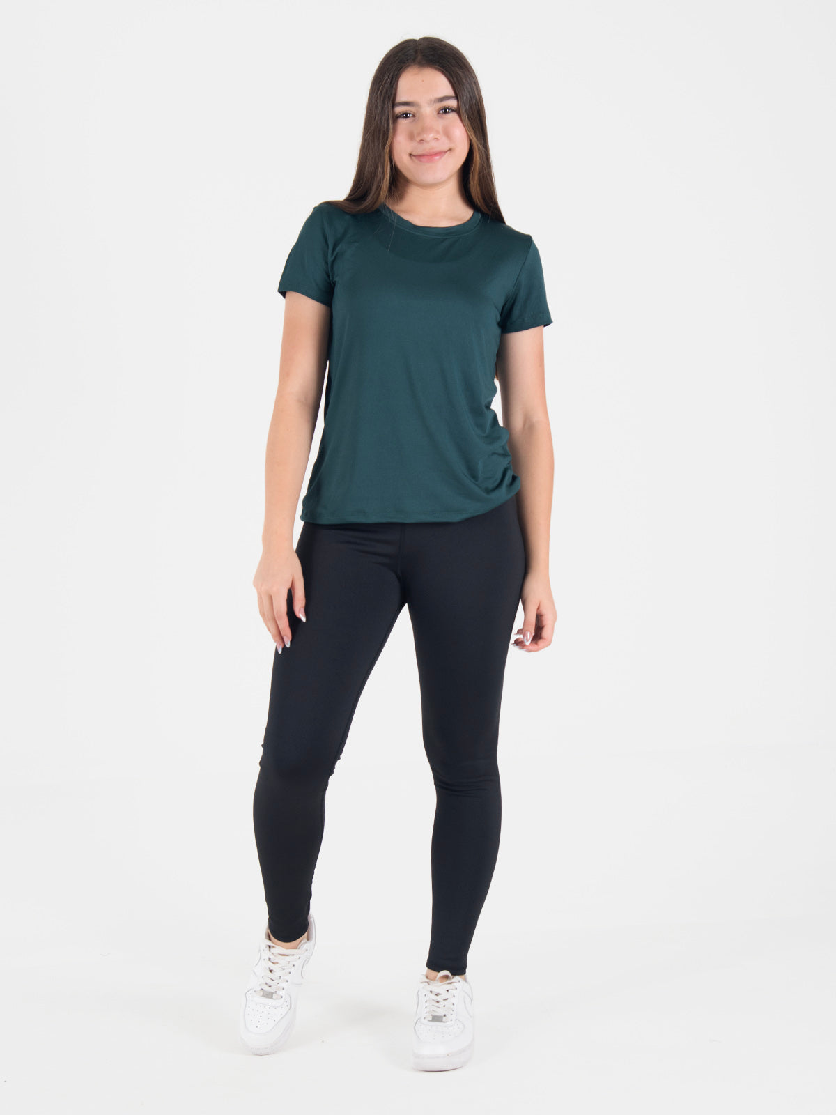 Camiseta: Diseño básico femenino con cuello redondo, manga corta y largo por debajo de la cintura. Ideal para un estilo cómodo y versátil, perfecta para uso diario o personalización.