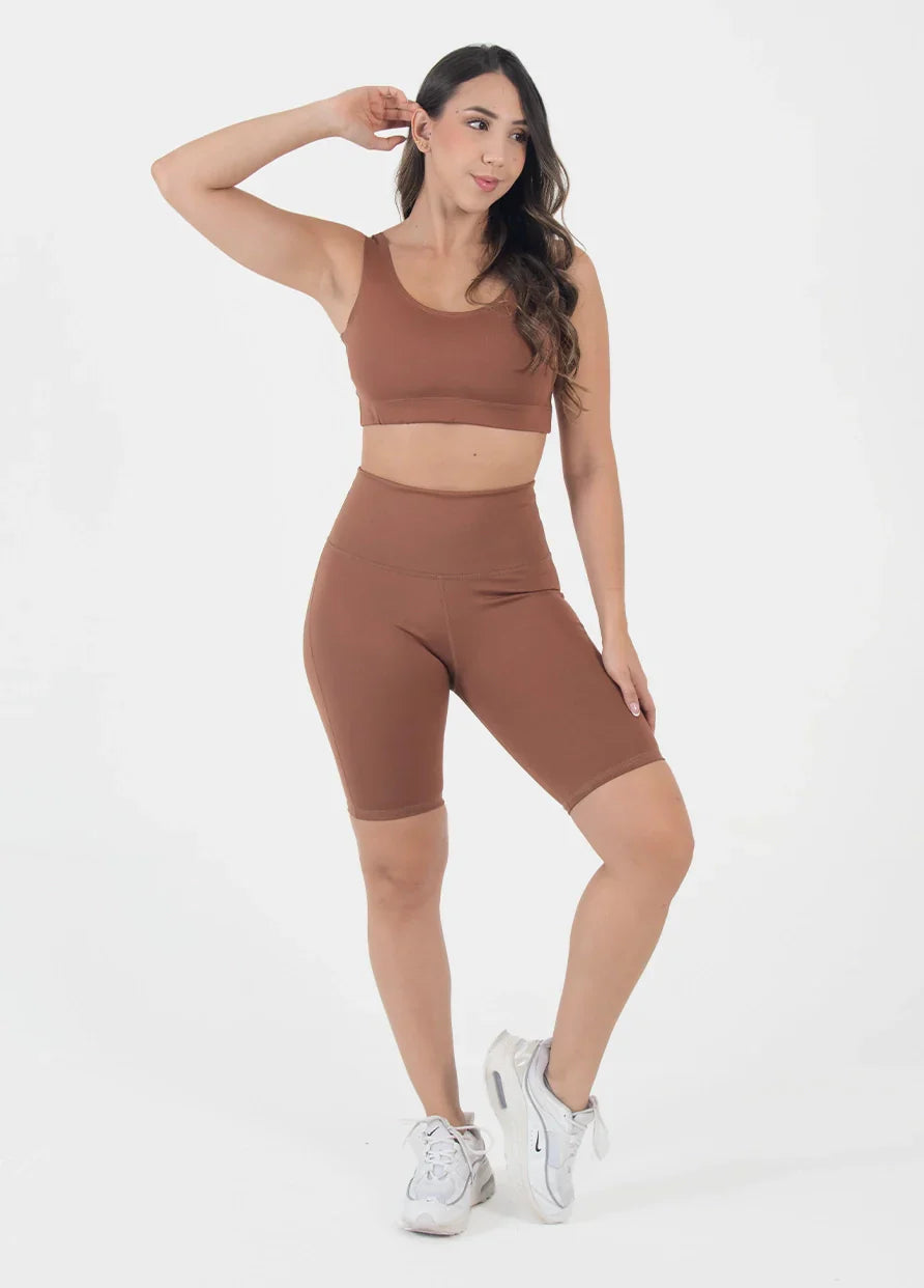 Top: Escote redondo con elástico en la parte inferior para mayor agarre y comodidad.
