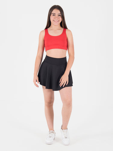 Faldashort: Diseño con falda simétrica y fajón medio que ofrece un ajuste favorecedor y moderno.