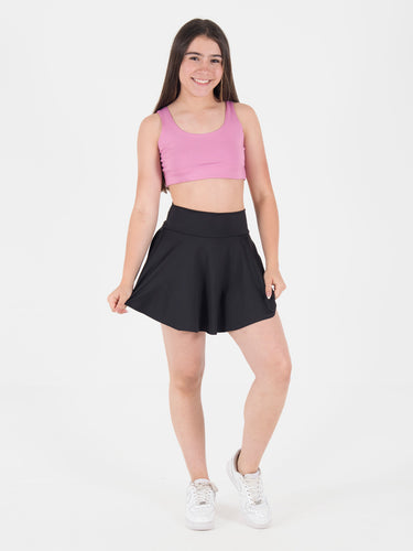 Faldashort: Diseño con falda simétrica y fajón medio que ofrece un ajuste favorecedor y moderno.