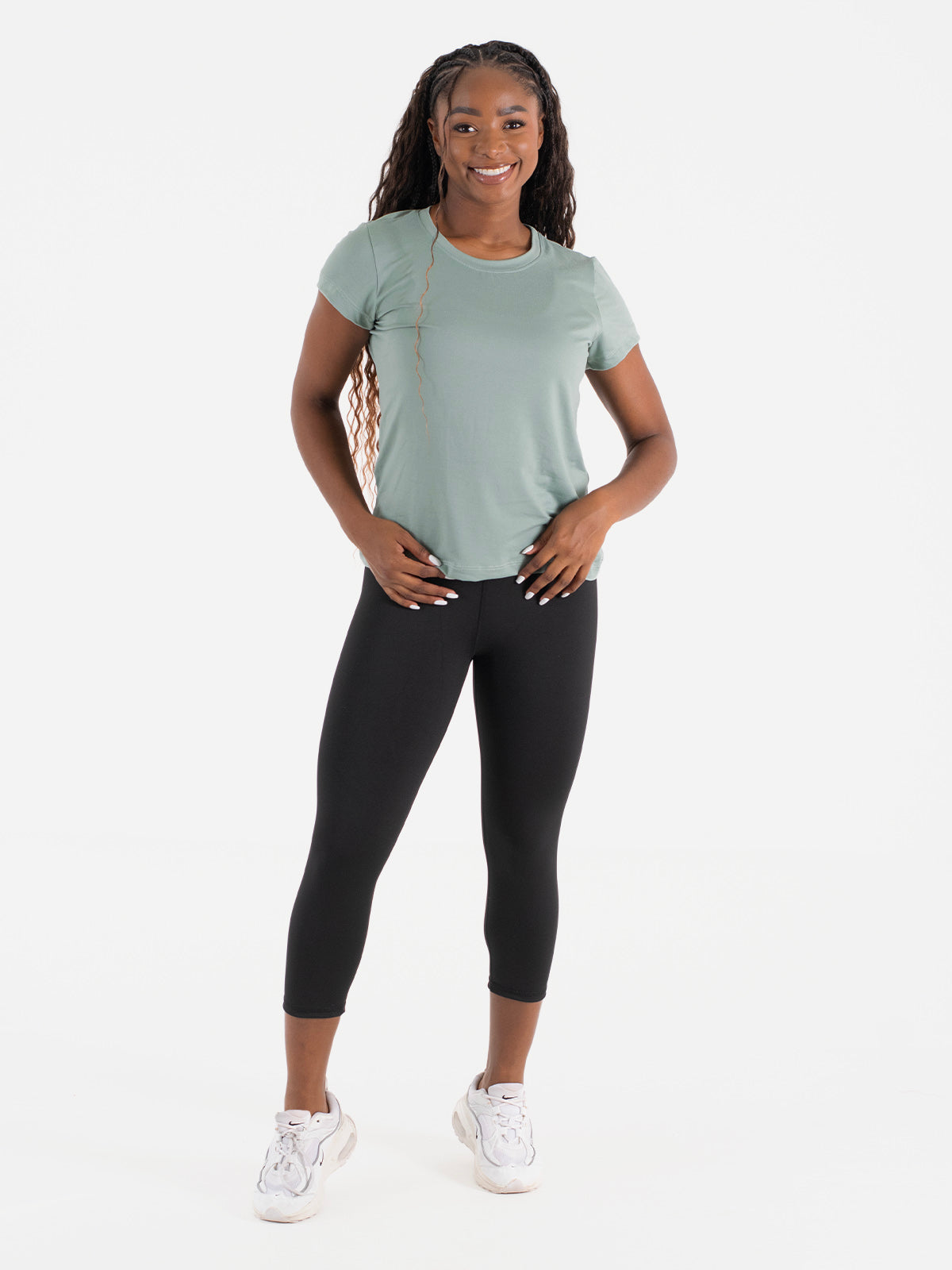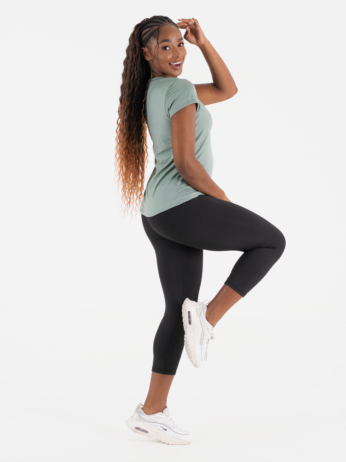 Leggins: Tipo capri con fajón de control de abdomen, largo a la mitad de la pantorrilla, diseñados para brindar comodidad y estilizar la figura.
