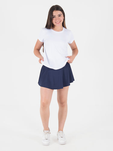 Faldashort: Diseño con falda simétrica y fajón medio que ofrece un ajuste favorecedor y moderno.