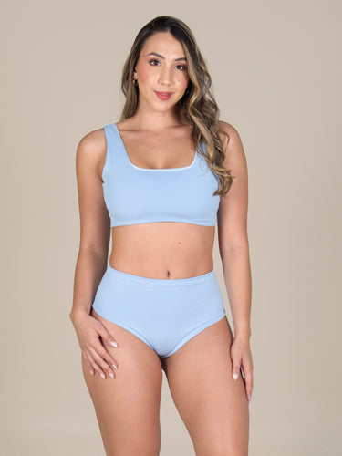 Conjunto de baño compuesto por panty a la cintura que brinda mayor cobertura y ajuste cómodo, y top con escotes cuadrados que aportan un diseño moderno y favorecedor. Ideal para disfrutar del sol con estilo y seguridad.