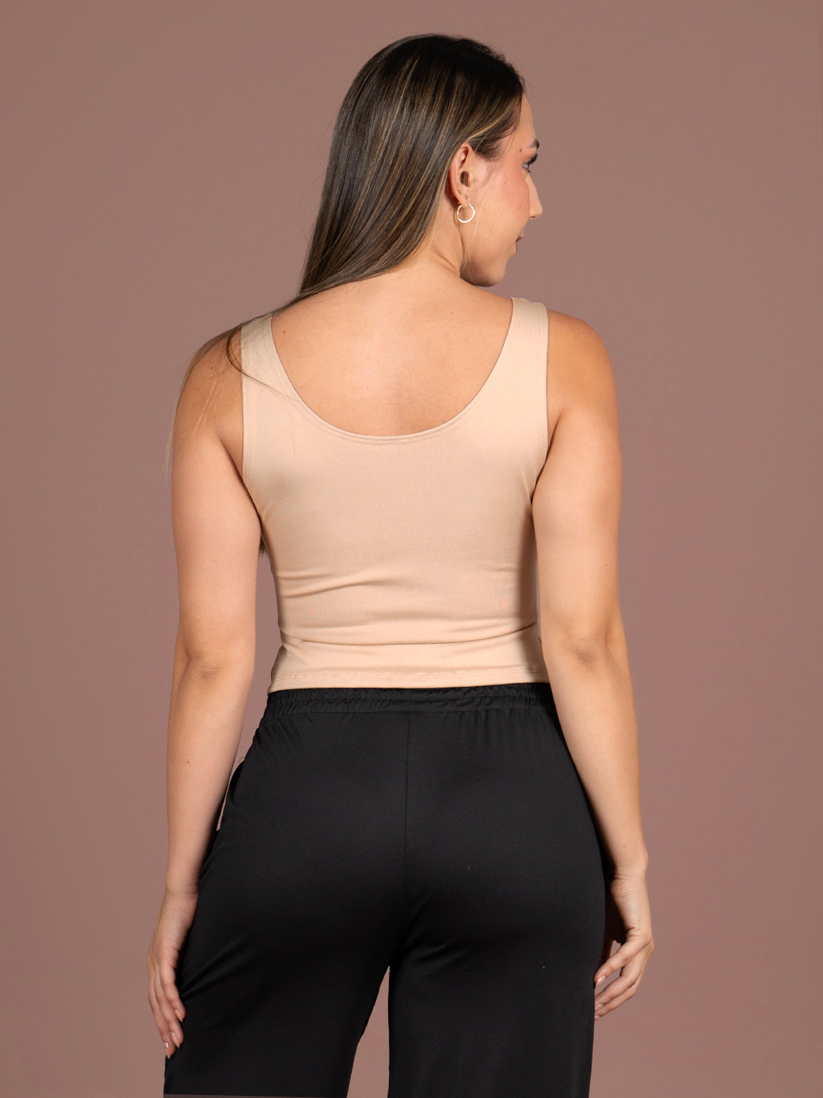 Blusa: Blusa corta sin mangas, tipo sisa, con escote pronunciado en el frente que resalta la silueta de forma elegante y moderna. Ideal para looks deportivos o casuales.