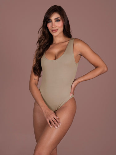 Body: cuello redondo con escote pronunciado en la espalda. Composición