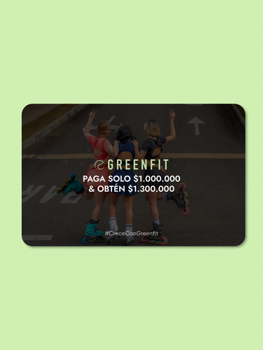 Greenfit te otorga un beneficio comercial, podrás llevar un bono redimible en productos disponibles en la tienda online de Greenfit. por valor de $1.300.000 COP Pagando únicamente $1.000.000 COP.