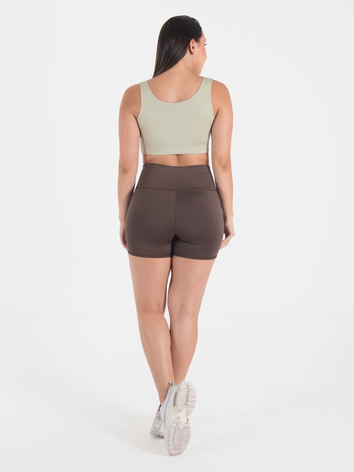Top: Escote redondo con elástico en la parte inferior para mayor agarre y comodidad.