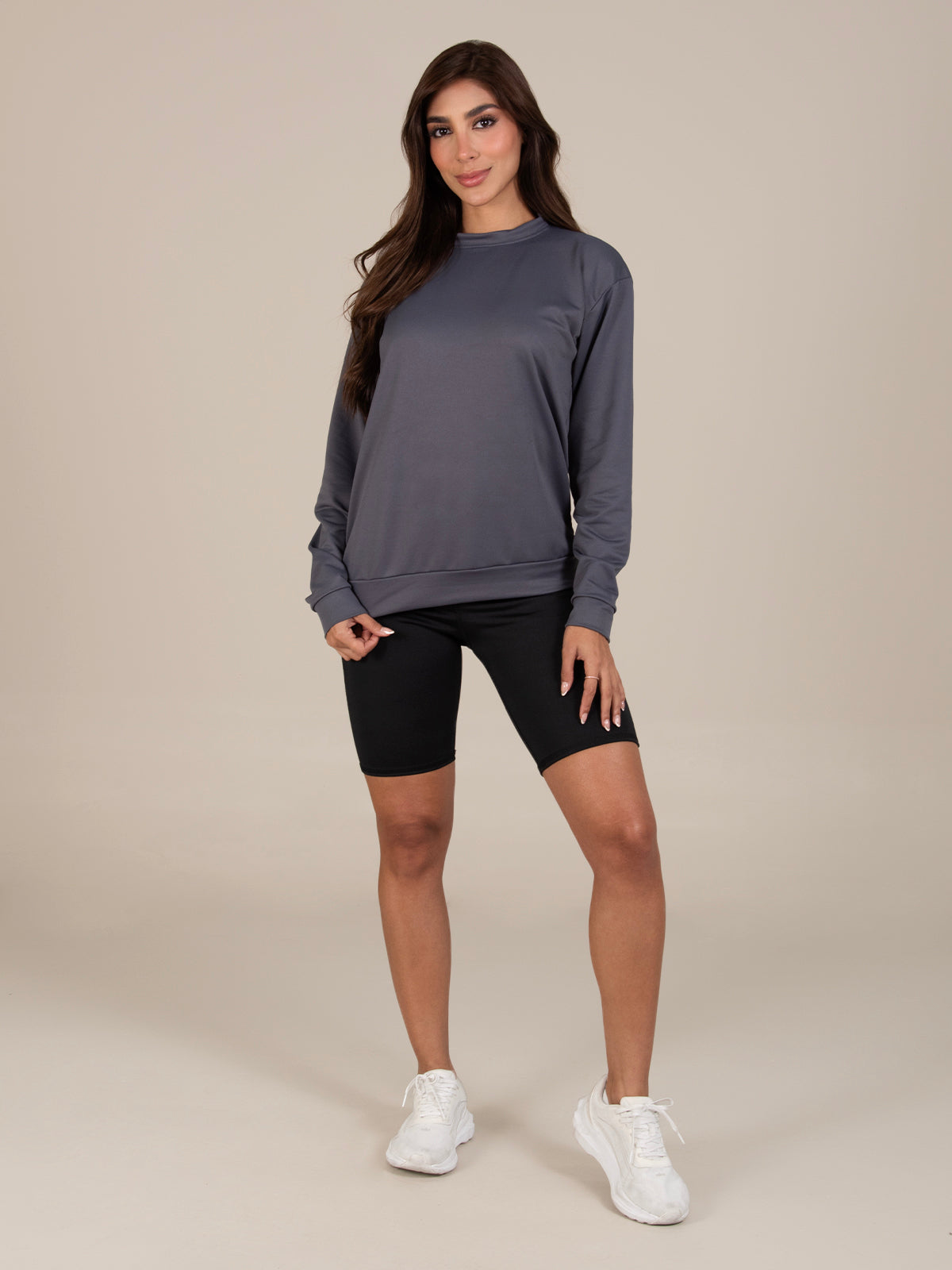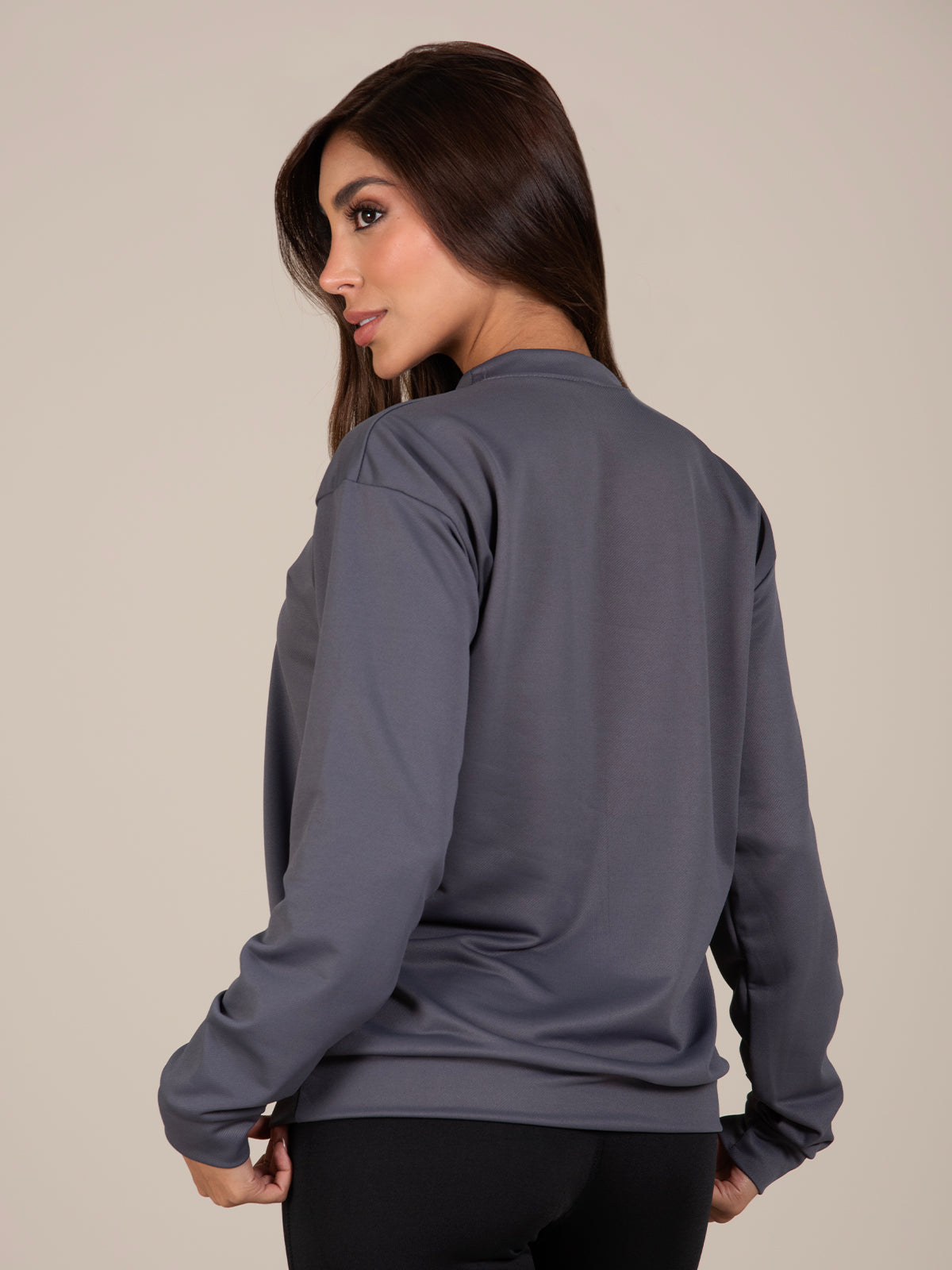 Modelo: Mide 1,70m y está usando talla S como referencia visual.