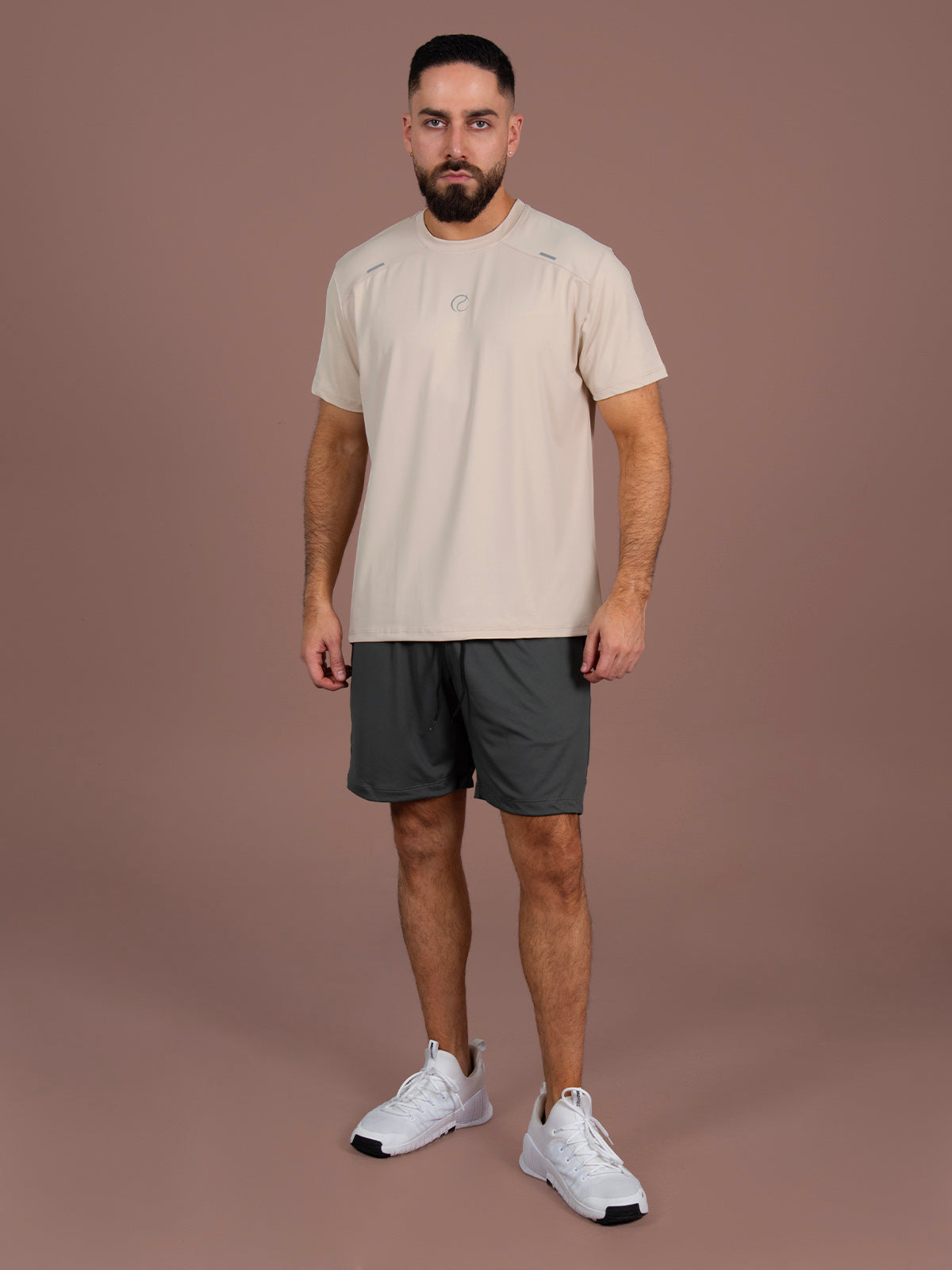Camiseta de diseño moderno con cortes decorativos en el frente, manga corta y cuello redondo. Perfecta para un look deportivo o casual, ofreciendo comodidad y estilo en cada movimiento.