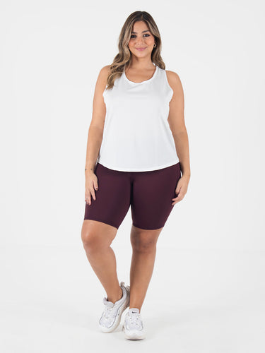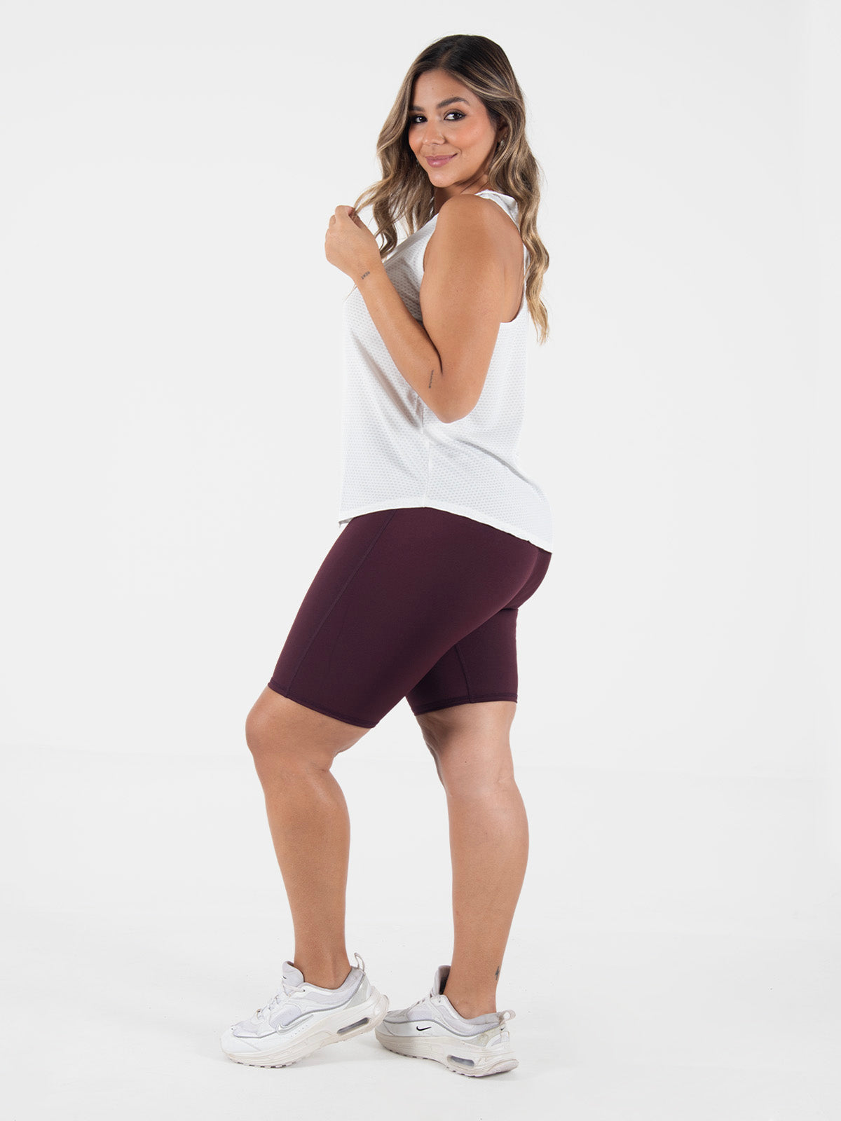 Blusa: Prenda ligera y versátil con escote redondo. Incluye posterior partido y sisa profunda en espalda, lo que le da un estilo fresco y moderno, ideal para climas cálidos o para entrenar con comodidad.