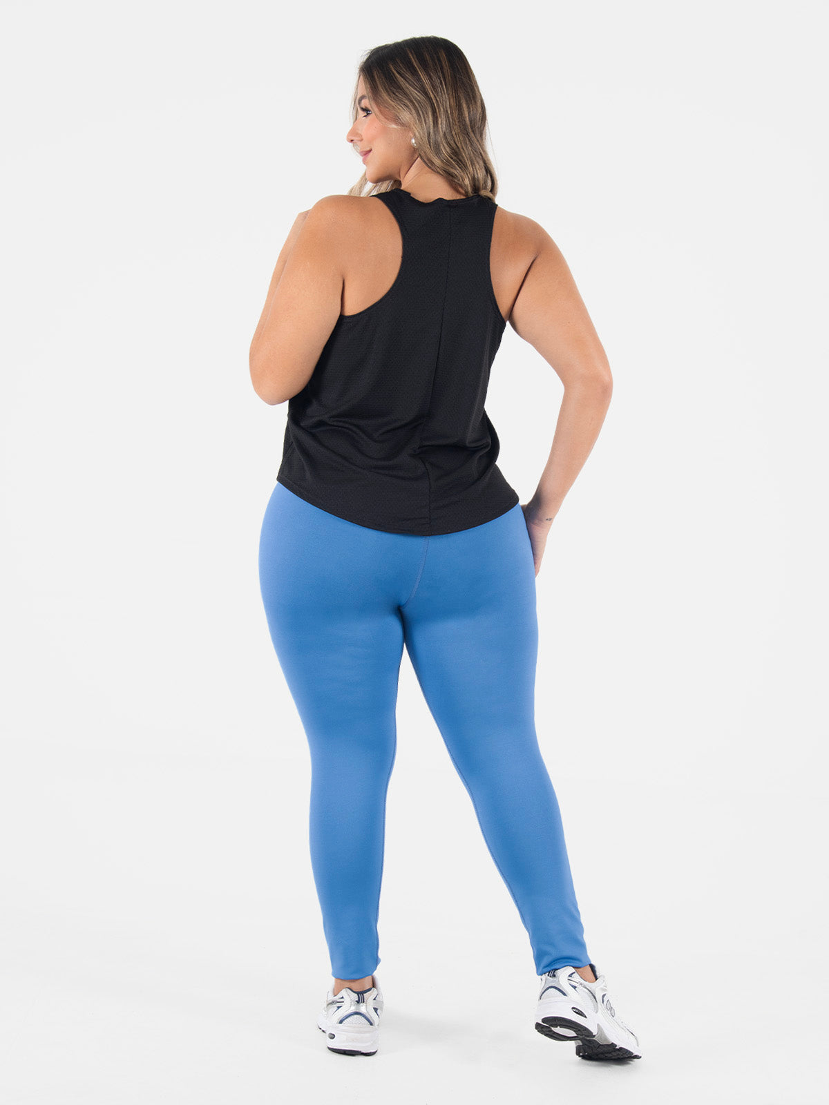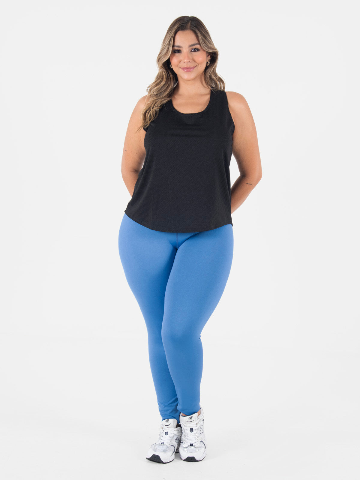 Blusa: Prenda ligera y versátil con escote redondo. Incluye posterior partido y sisa profunda en espalda, lo que le da un estilo fresco y moderno, ideal para climas cálidos o para entrenar con comodidad.