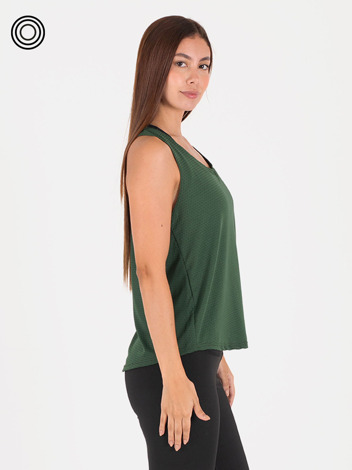 Blusa deportiva manga sisa con cuello sesgado, terminación curva en el inferior.