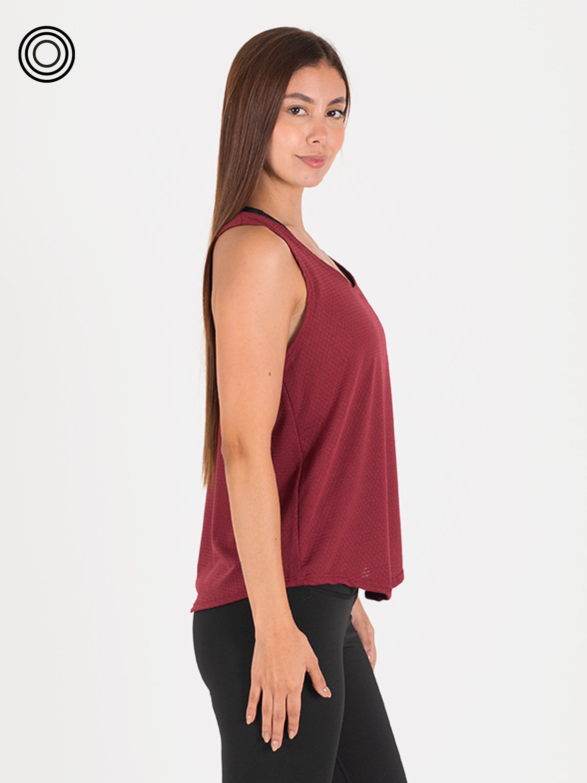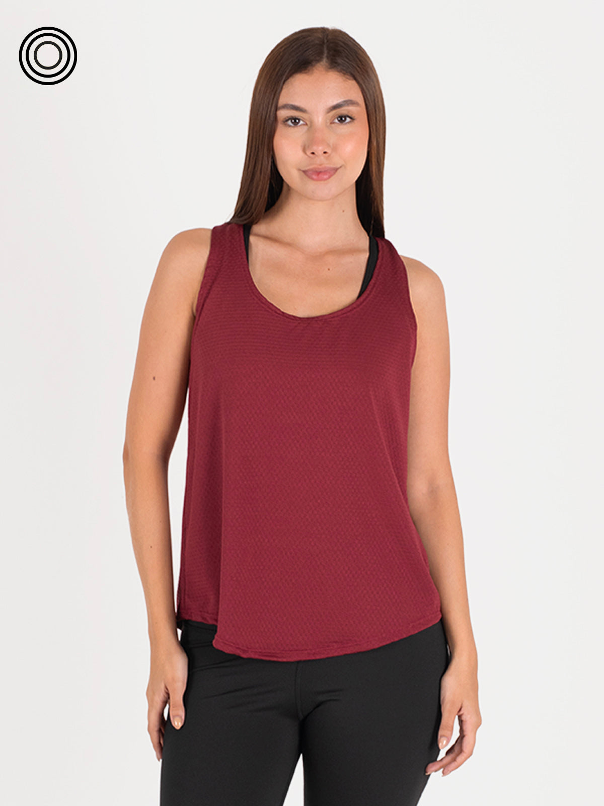 Blusa deportiva manga sisa con cuello sesgado, terminación curva en el inferior.