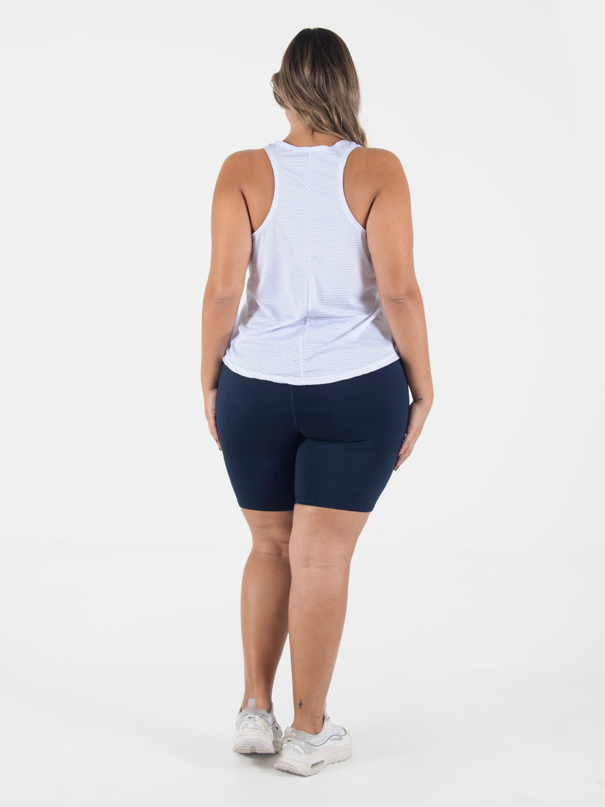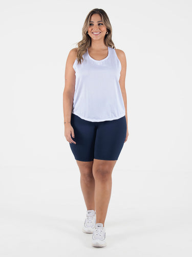Blusa: Prenda ligera y versátil con escote redondo. Incluye posterior partido y sisa profunda en espalda, lo que le da un estilo fresco y moderno, ideal para climas cálidos o para entrenar con comodidad.