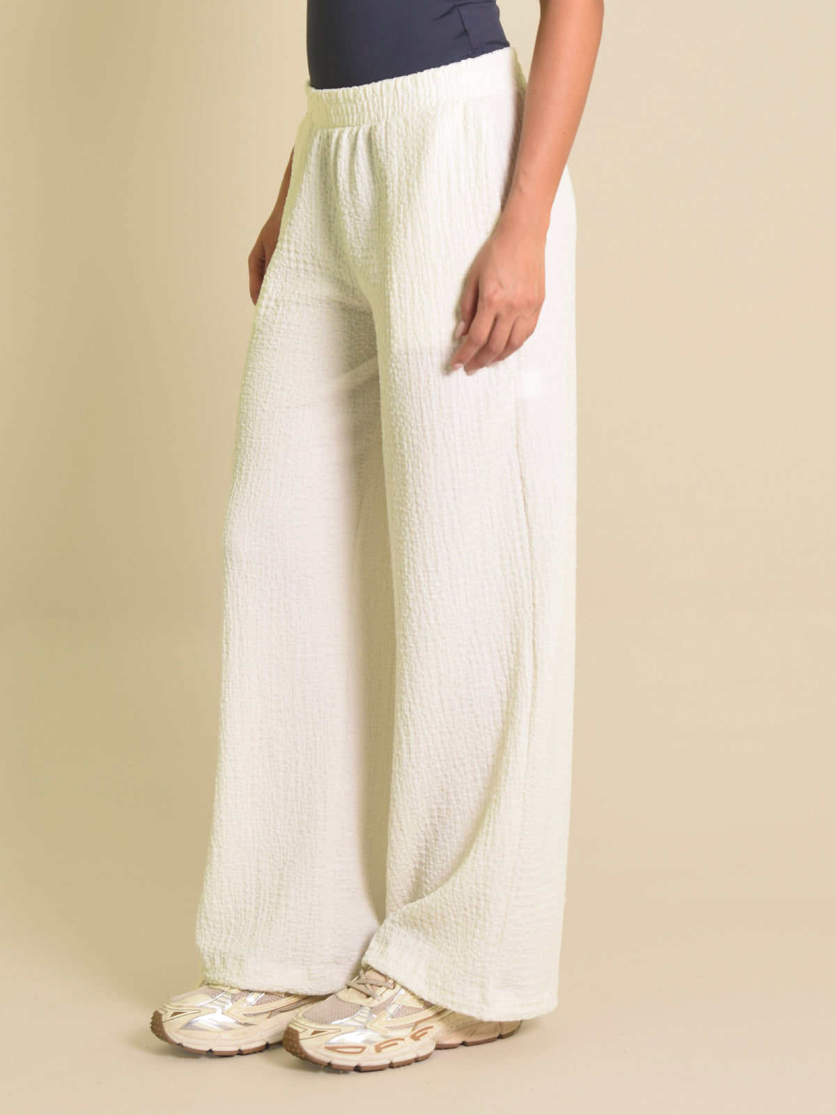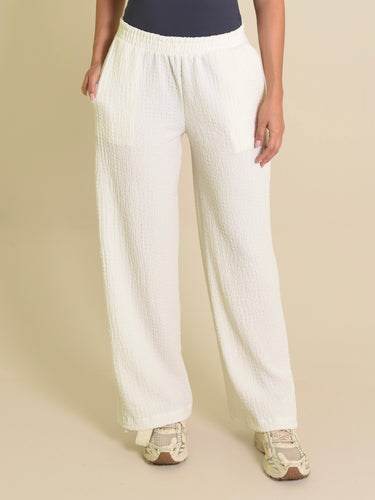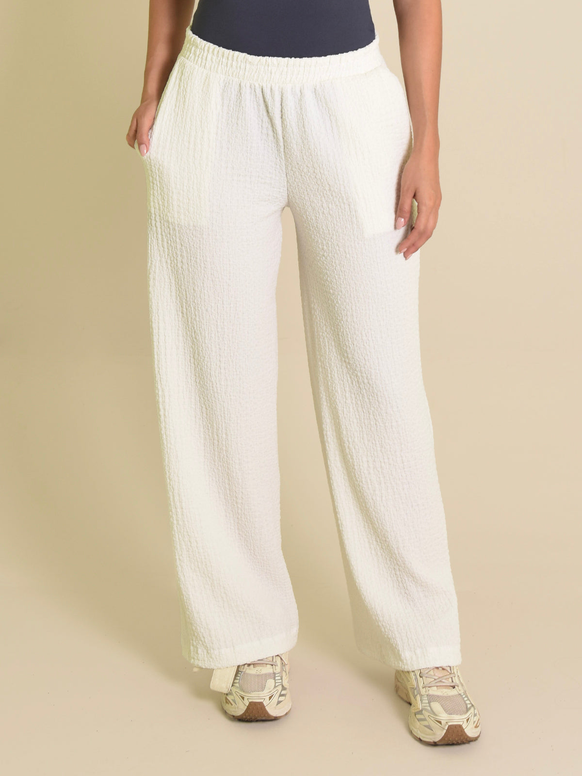 Pantalón de silueta recta que brinda un ajuste cómodo y favorecedor. Cuenta con bolsillos delanteros funcionales y pretina resortada que se adapta al cuerpo sin generar presión, ideal para el uso diario y para crear looks versátiles y relajados.