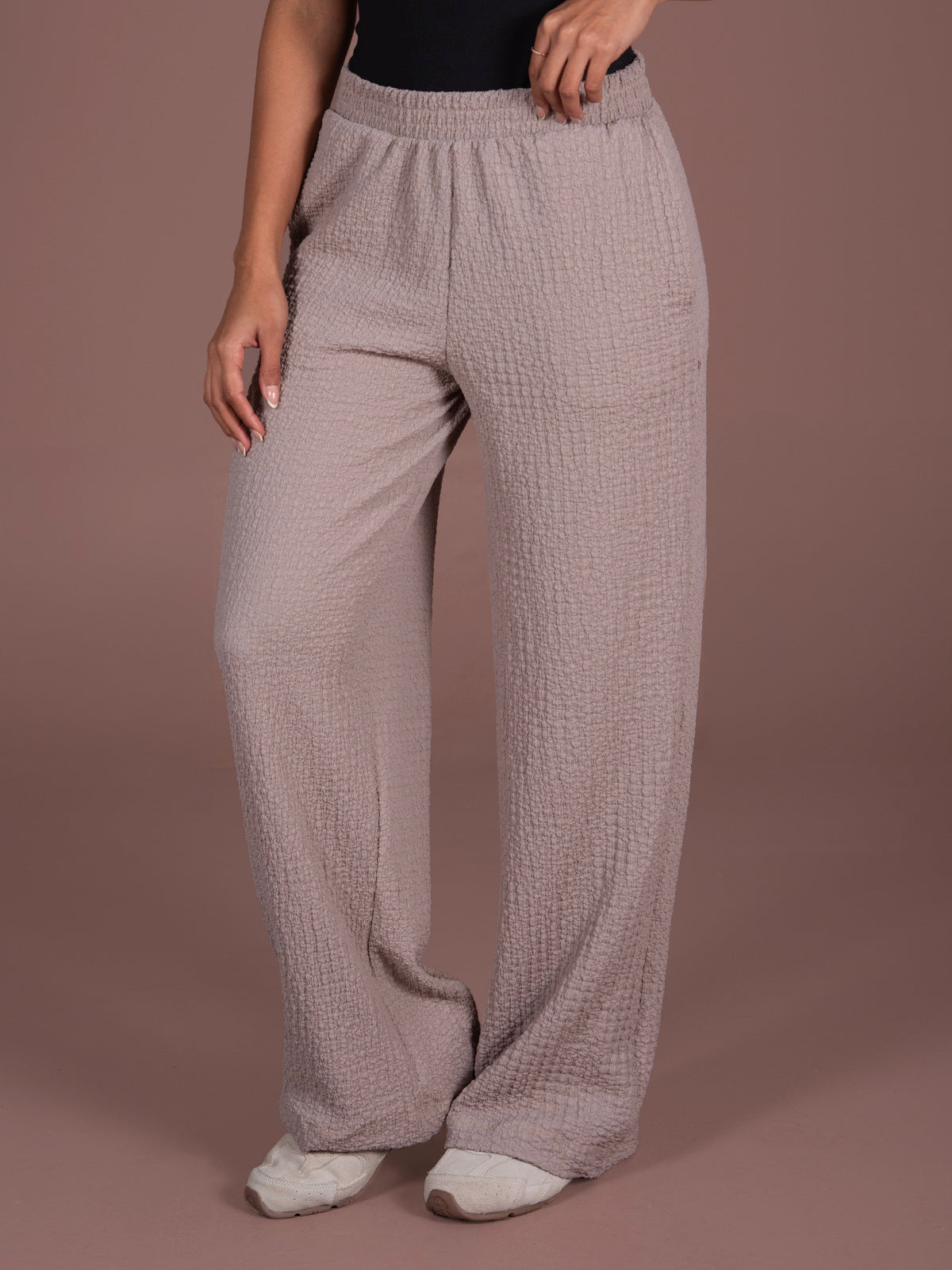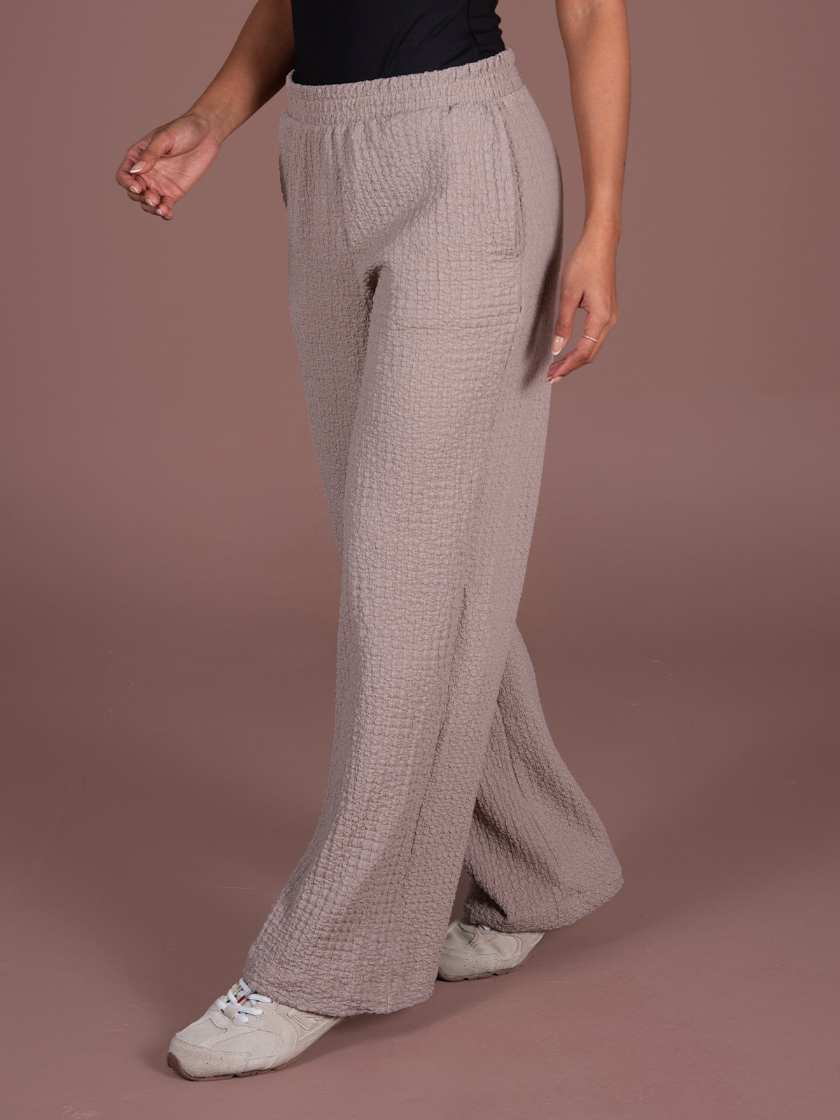 Pantalón de silueta recta que brinda un ajuste cómodo y favorecedor. Cuenta con bolsillos delanteros funcionales y pretina resortada que se adapta al cuerpo sin generar presión, ideal para el uso diario y para crear looks versátiles y relajados.