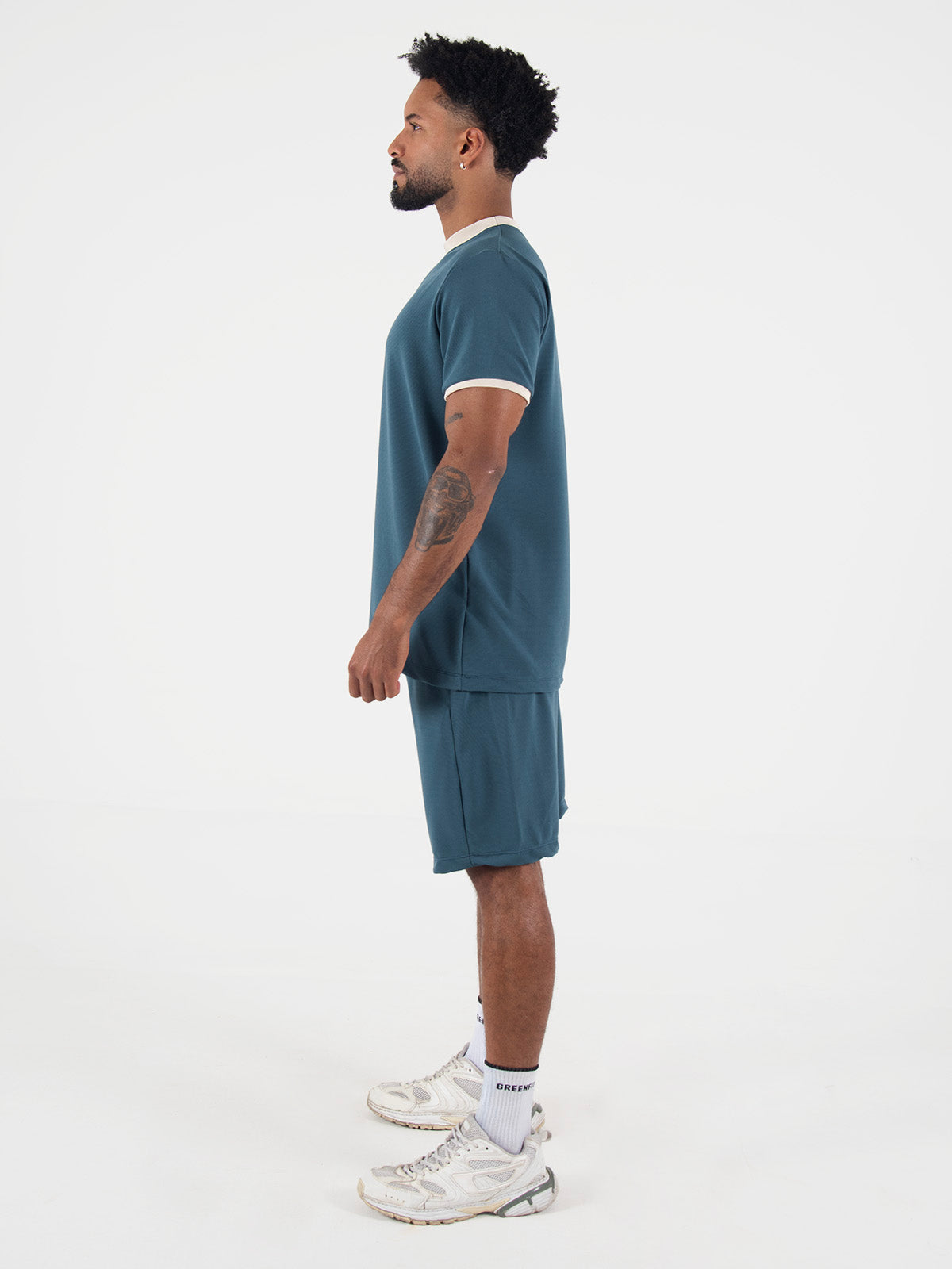 Camiseta: básica slim de manga corta y cuello ancho.