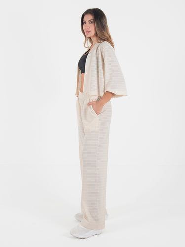 Set de dos piezas con un diseño fresco y relajado, ideal para looks casuales y cómodos. El pantalón de bota recta cuenta con pretina resortada que se adapta al cuerpo y bolsillos laterales funcionales, brindando comodidad y libertad de movimiento.