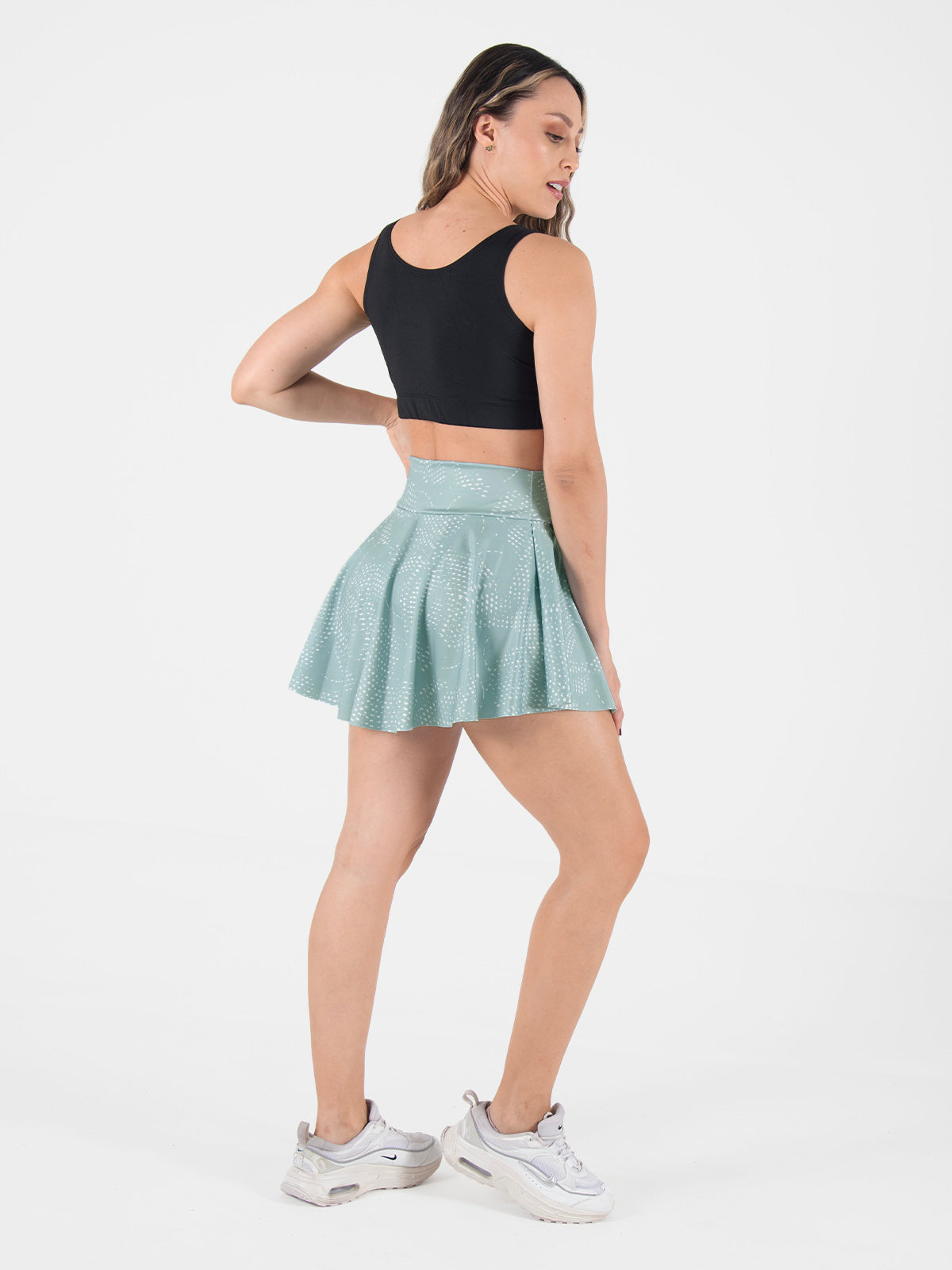 Faldashort: Diseño con falda simétrica y fajón medio que ofrece un ajuste favorecedor y moderno.