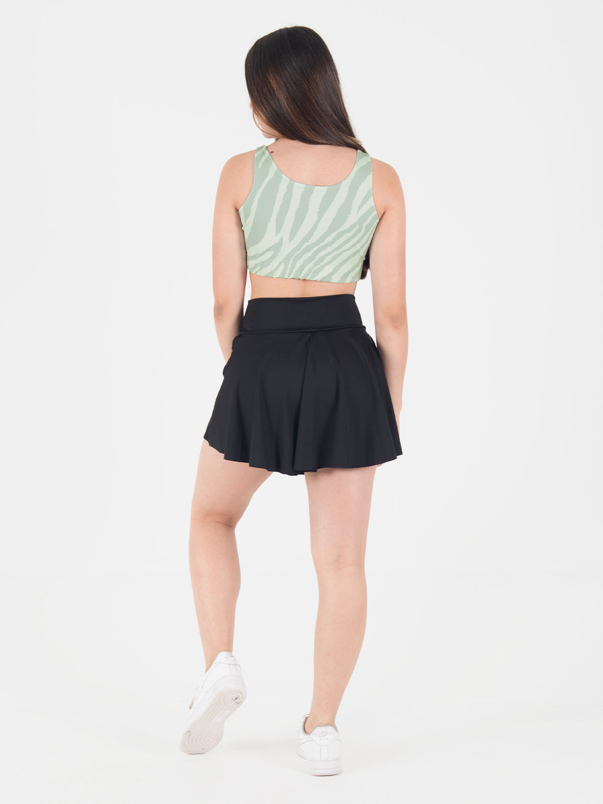 Faldashort: Diseño con falda simétrica y fajón medio que ofrece un ajuste favorecedor y moderno.